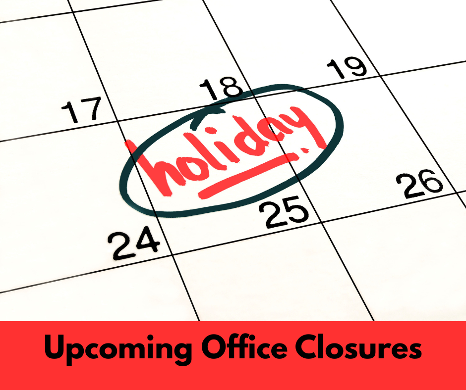 The Camden County Extension Office will be closed on the following dates for the holidays: